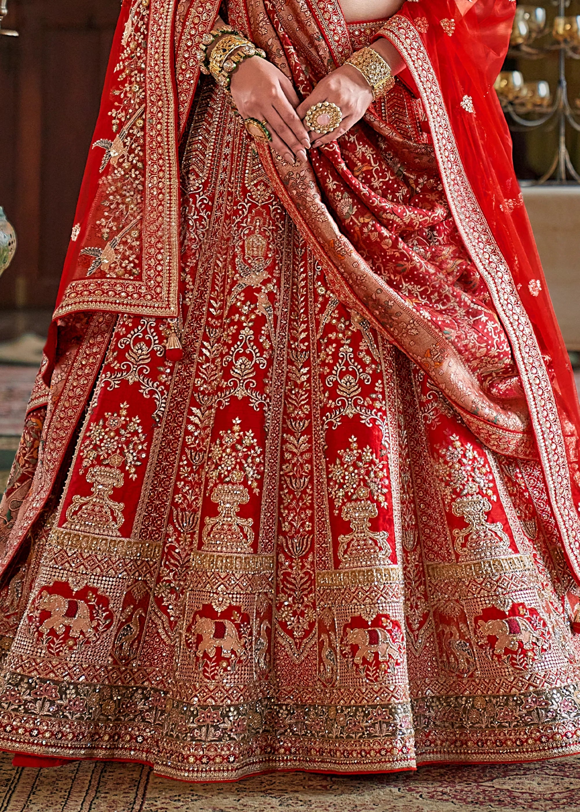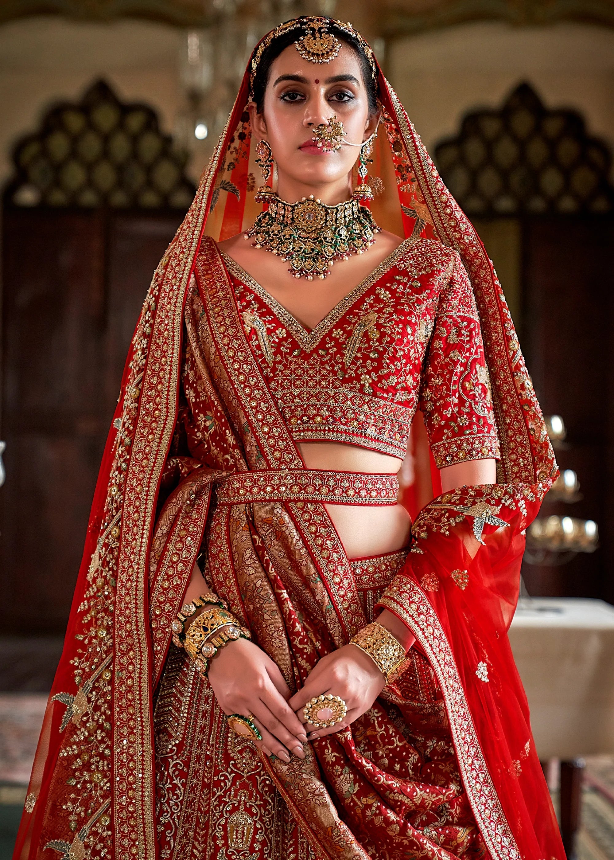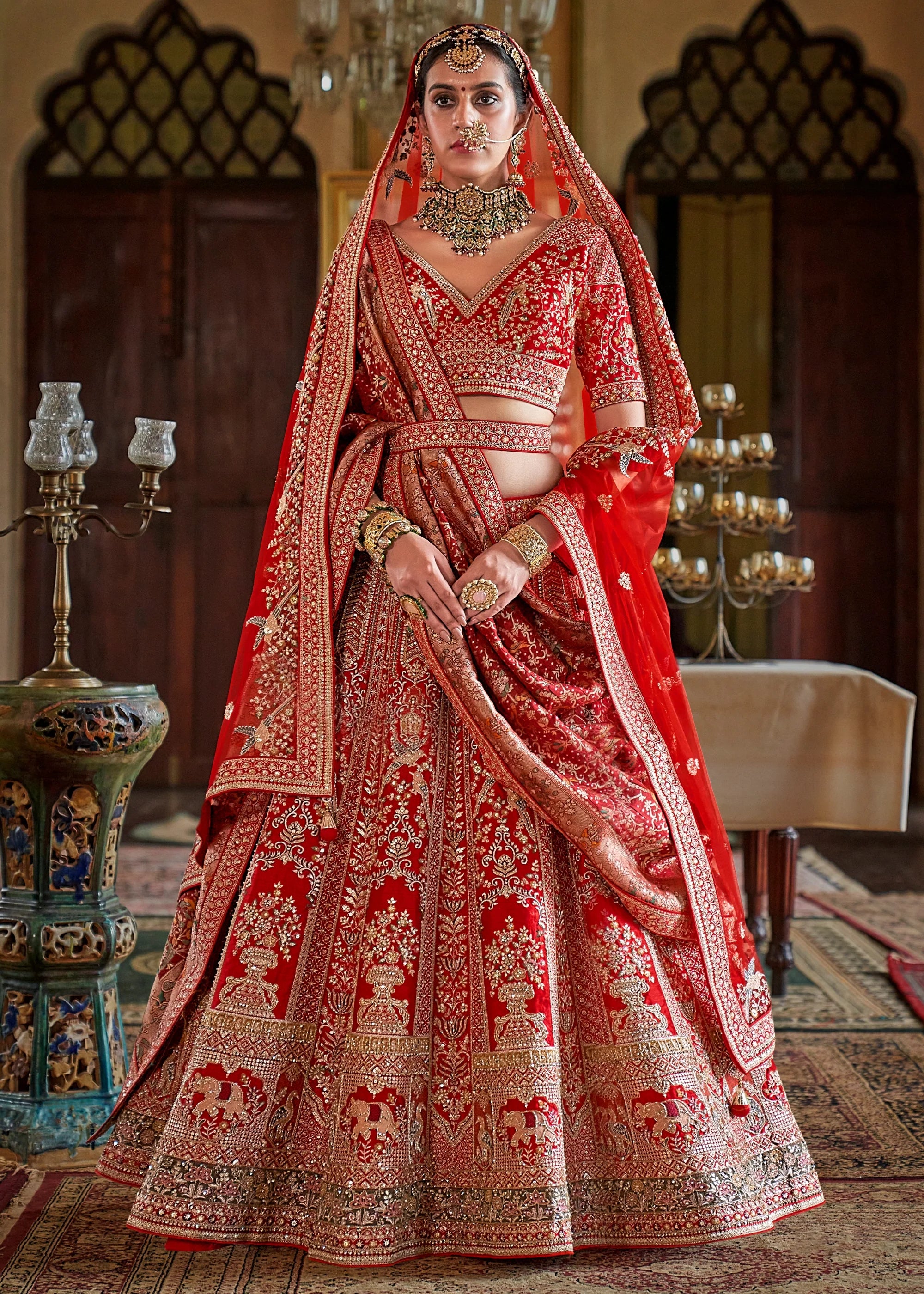 Bridal Red Heavy Embroidered Designer Lehenga