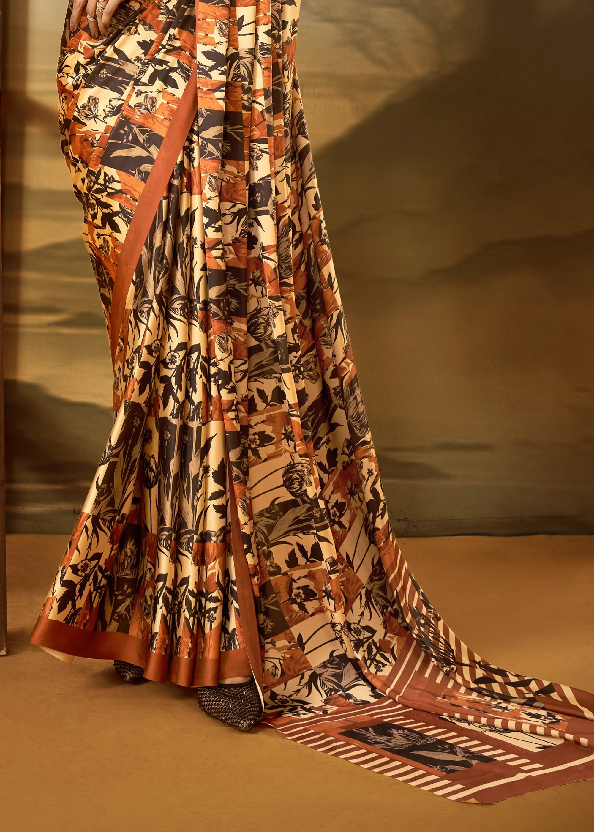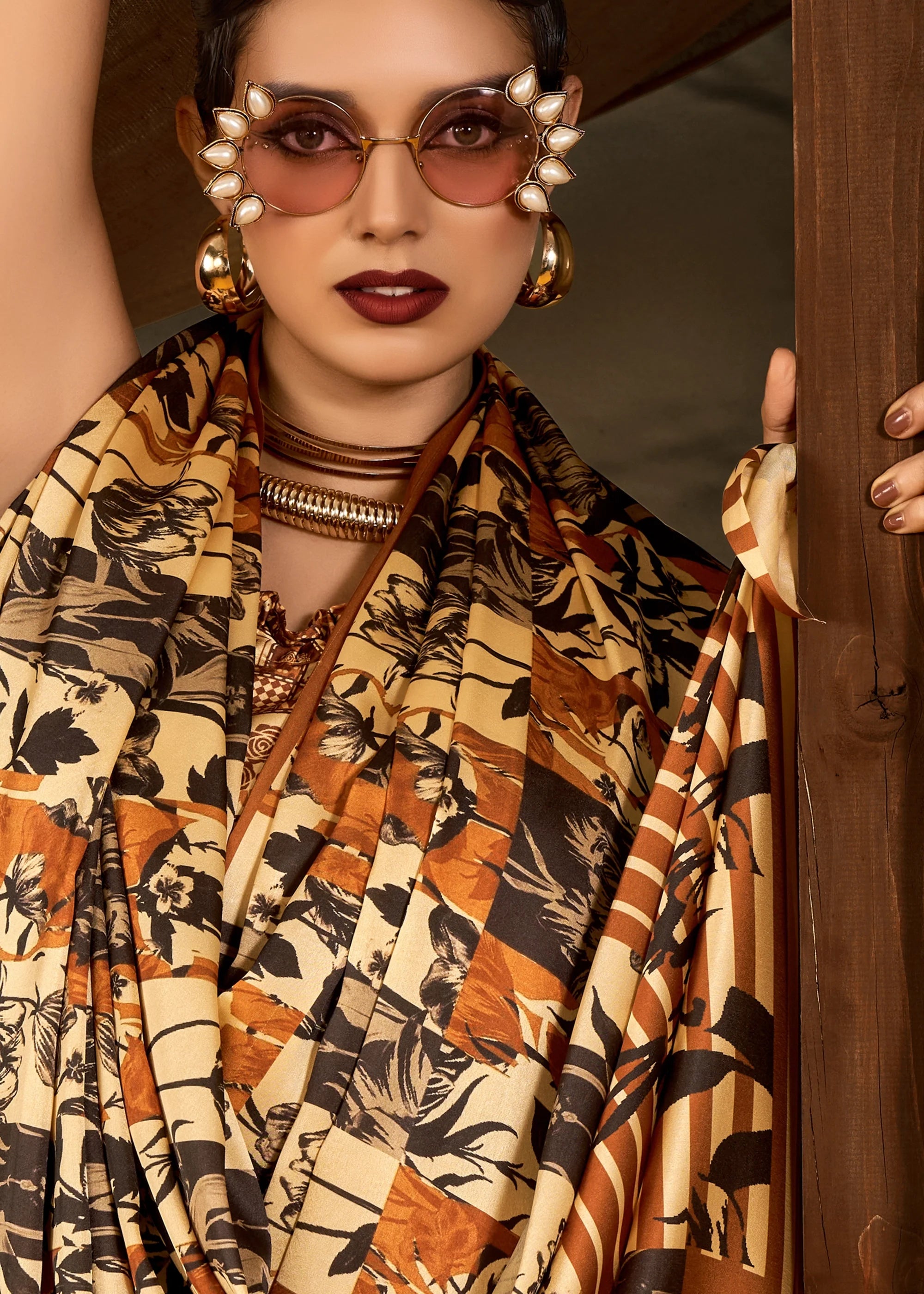 A classic new-age addition to your wardrobe that will never go out of style. Presenting to you stunning and printed satin crepe sarees that represent sheer elegance. These six yards of happiness are curated with supreme softness and comfort for you.