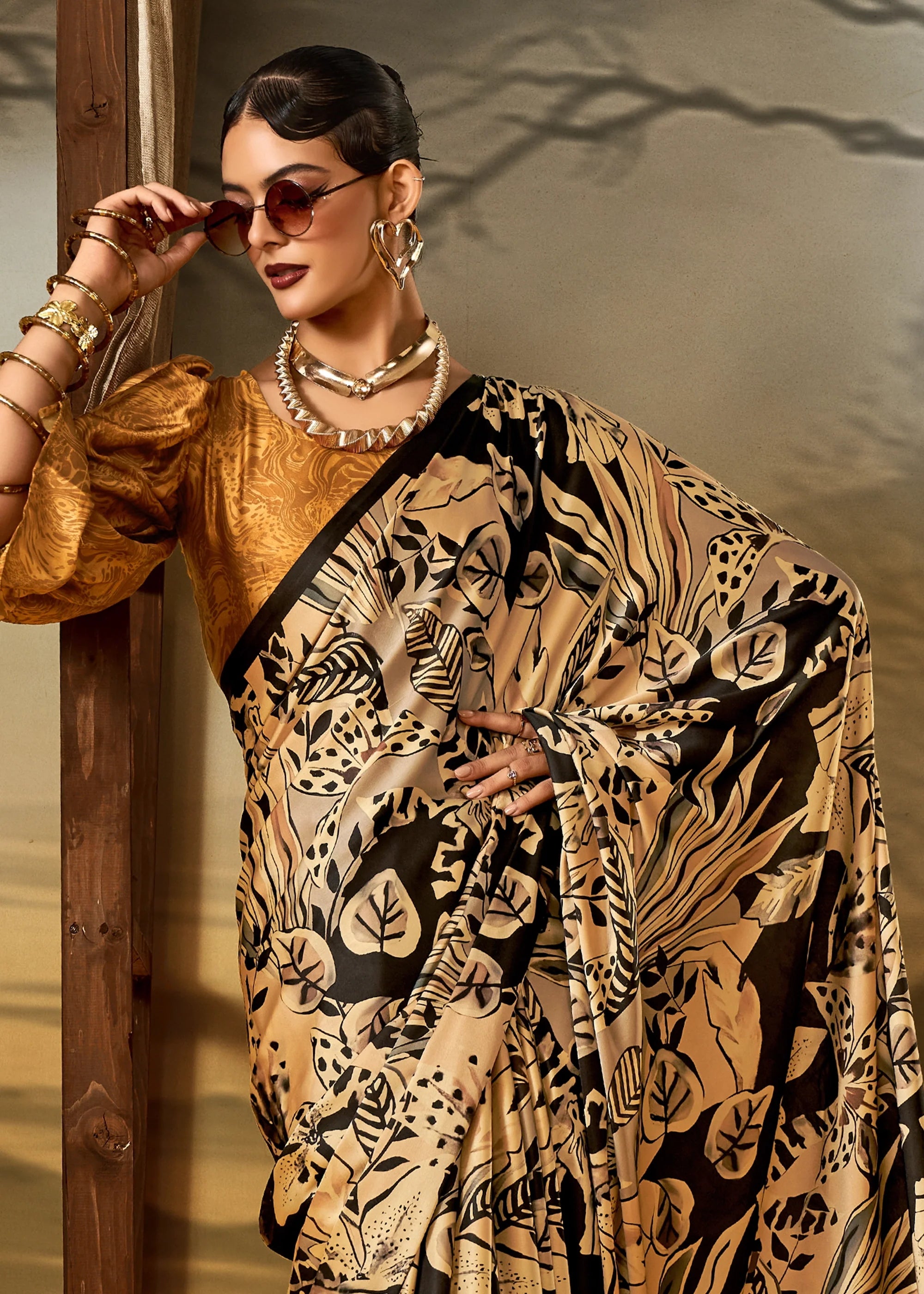 A classic new-age addition to your wardrobe that will never go out of style. Presenting to you stunning and printed satin crepe sarees that represent sheer elegance. These six yards of happiness are curated with supreme softness and comfort for you.