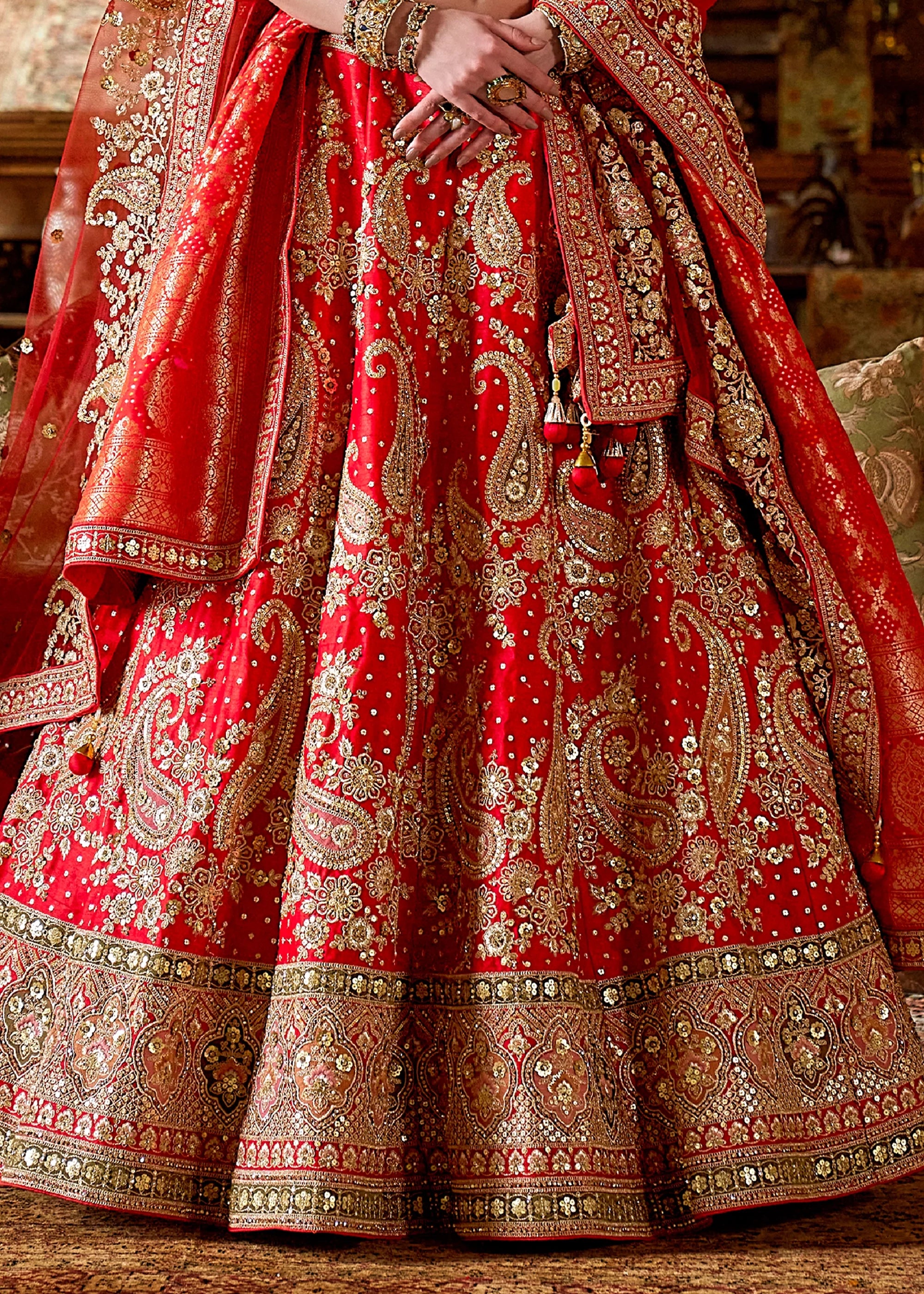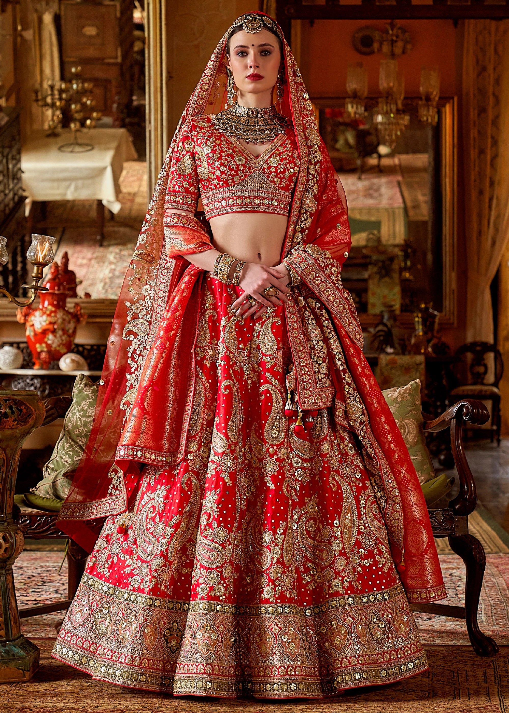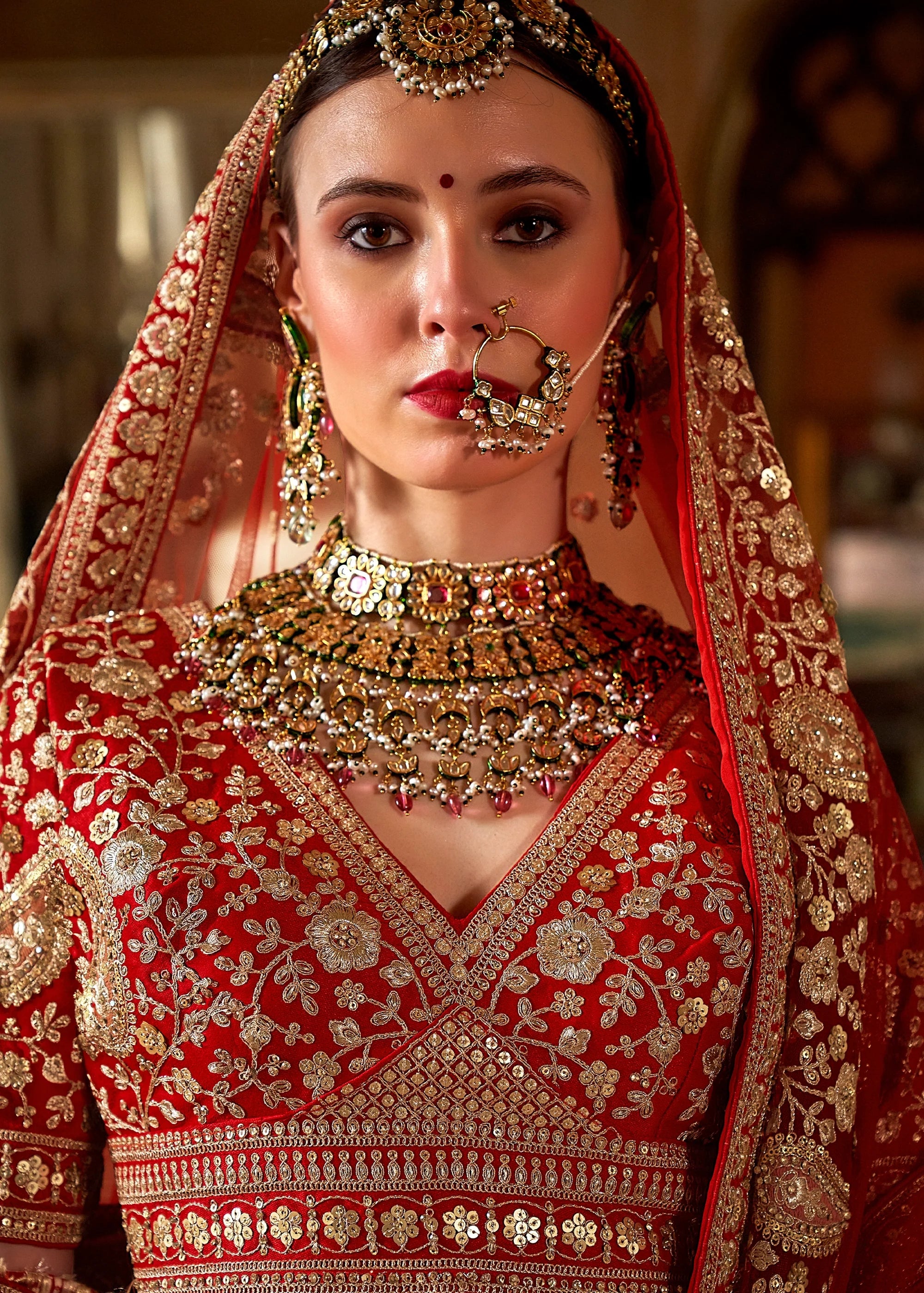 Dazzling Red Heavy Embroidered Designer Lehenga