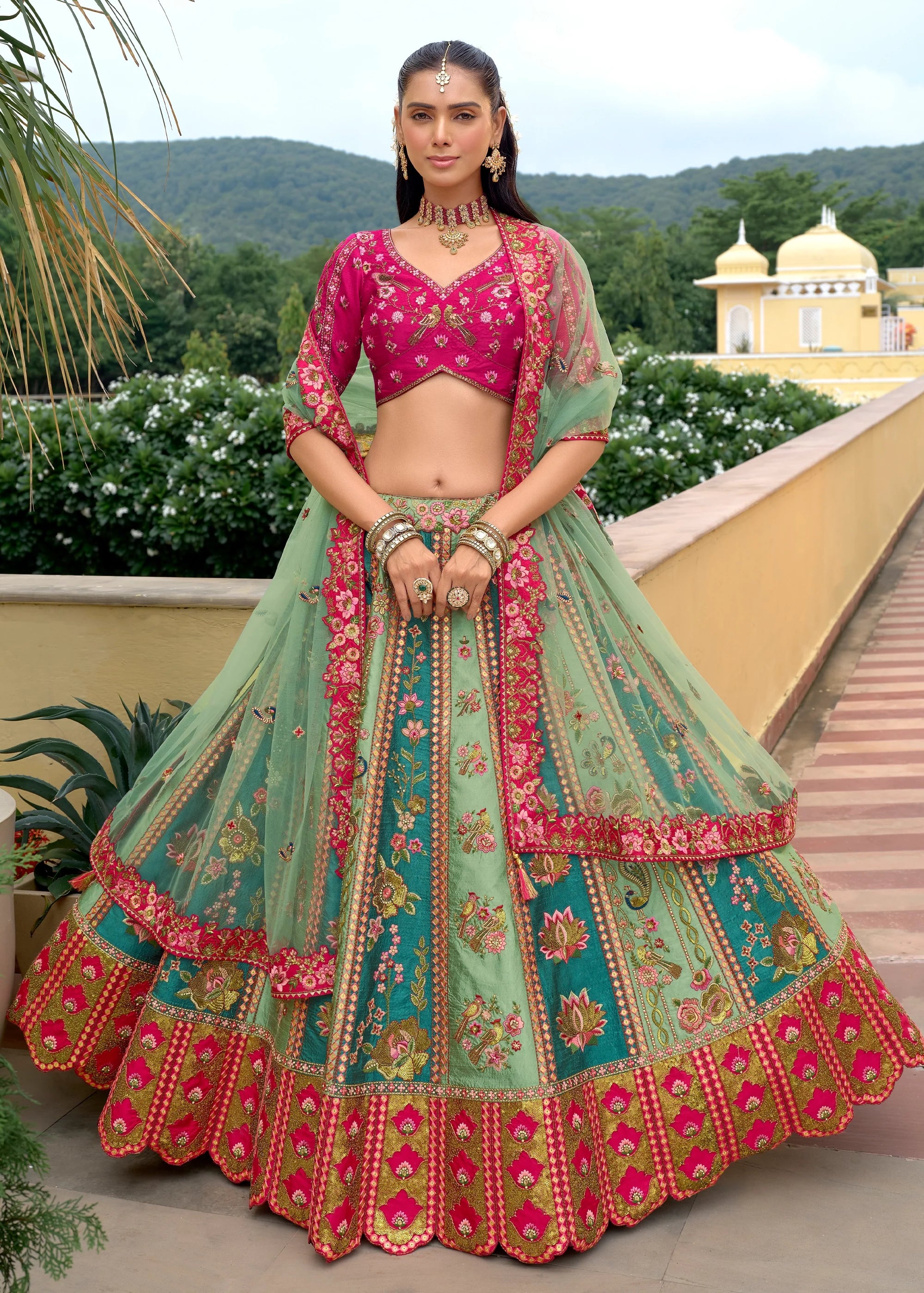 • Lehenga Fabric: Fancy Silk with heavy Designer Work (Cut Work Border, Stone, Sequence, Mirror, and Embroidery).