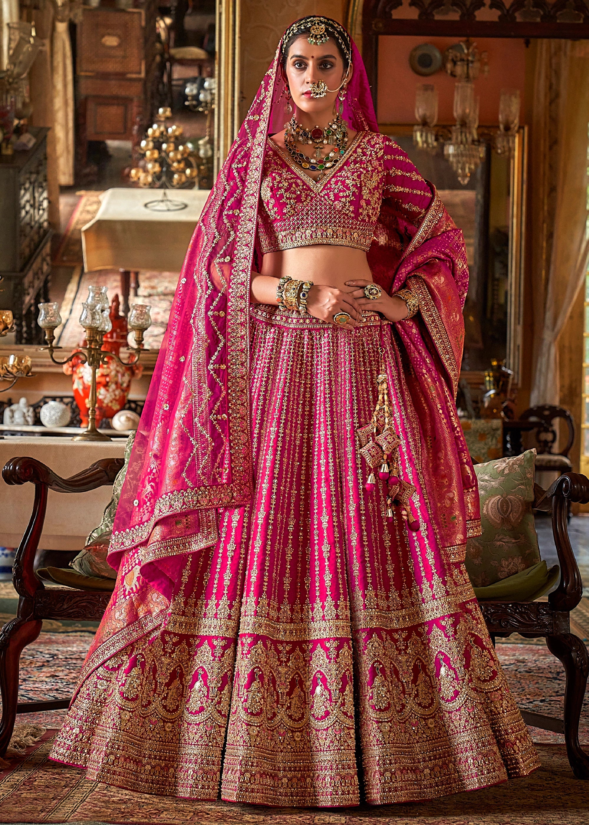 Fuchsia Pink Heavy Embroidered Designer Lehenga