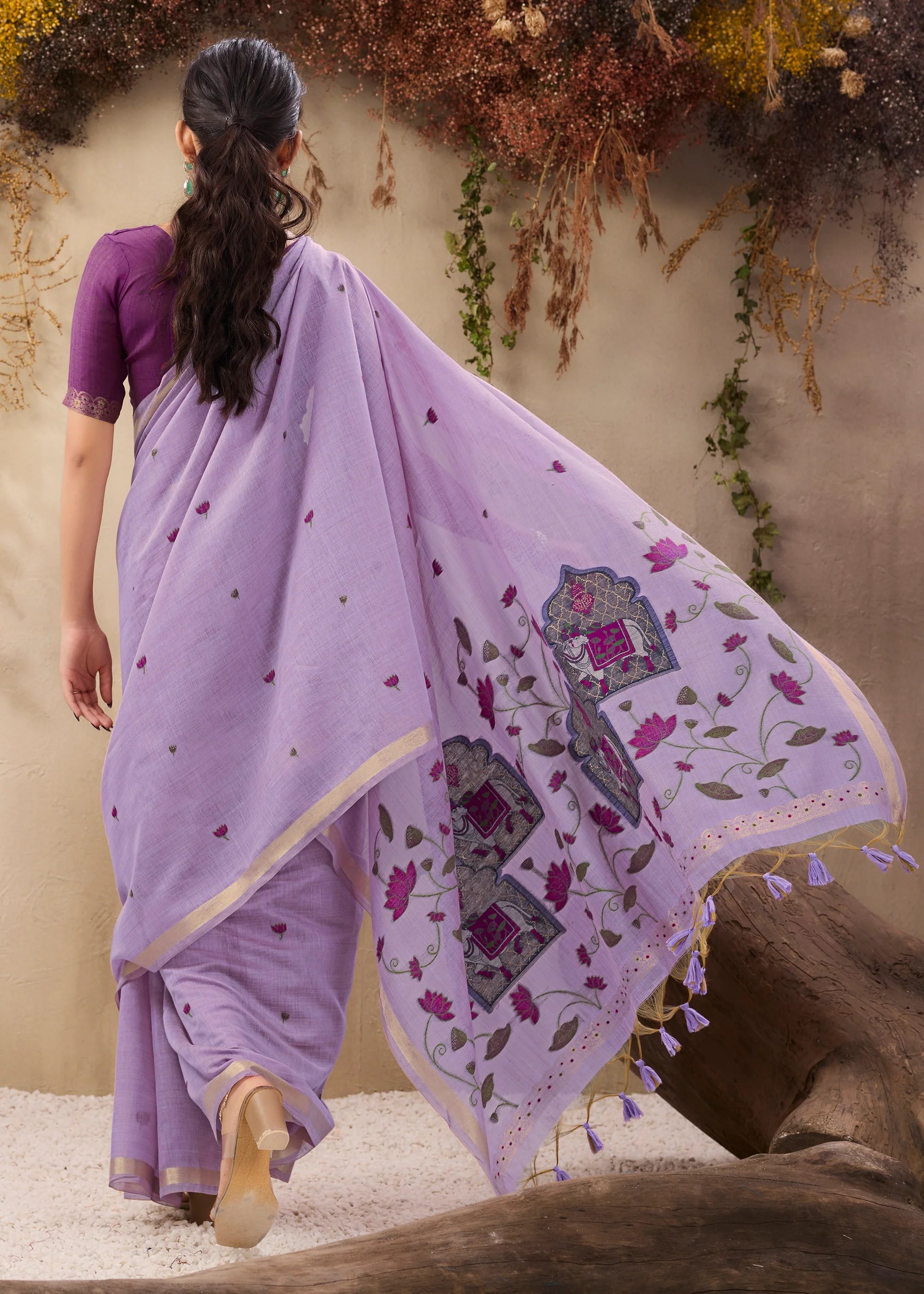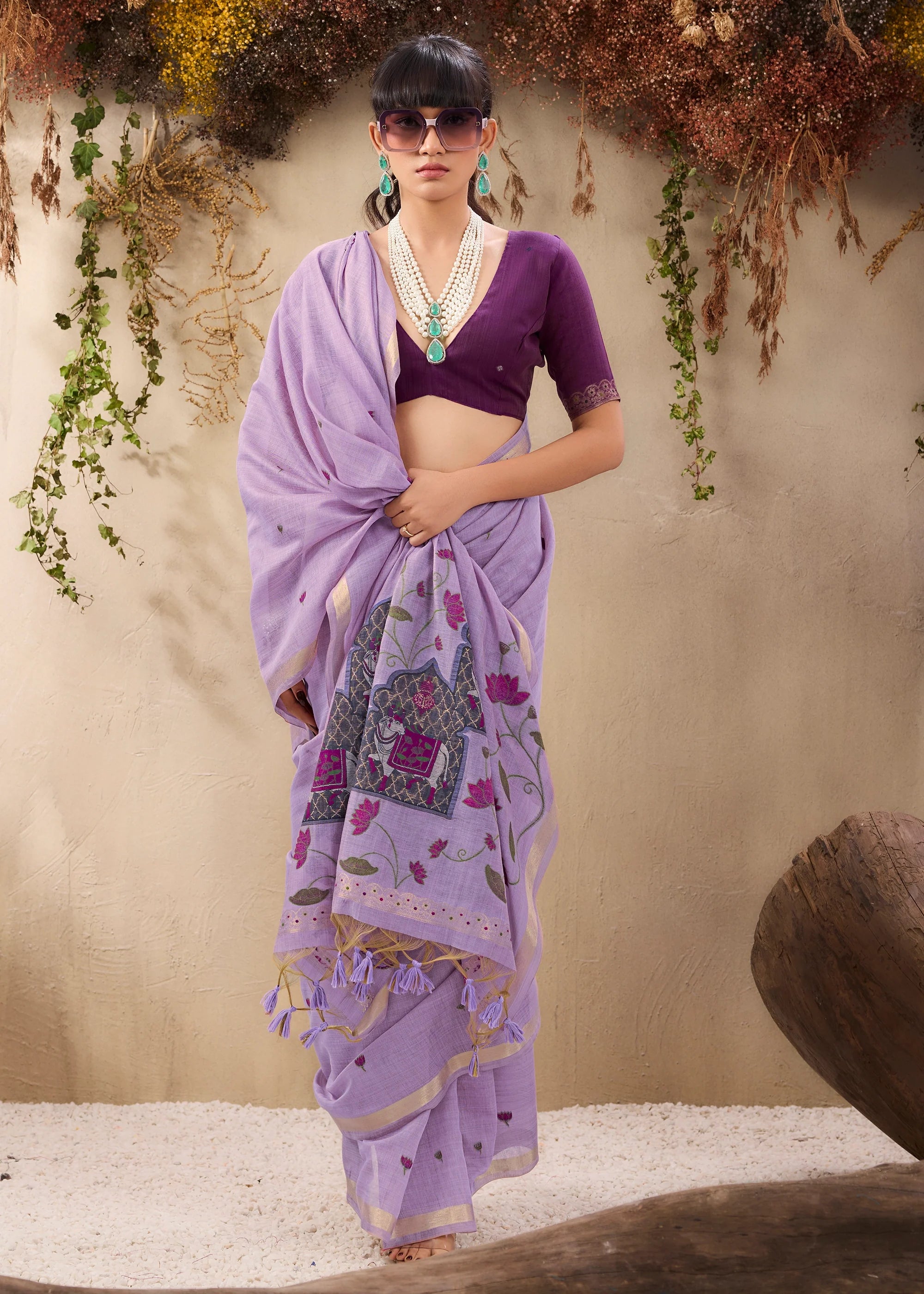 This exquisite saree features a beautiful blend of cotton and silk threads, expertly woven together to create a fabric that is both soft and lustrous. The cotton provides a comfortable drape, while the silk adds a subtle sheen and texture, giving the saree a regal and sophisticated appearance.