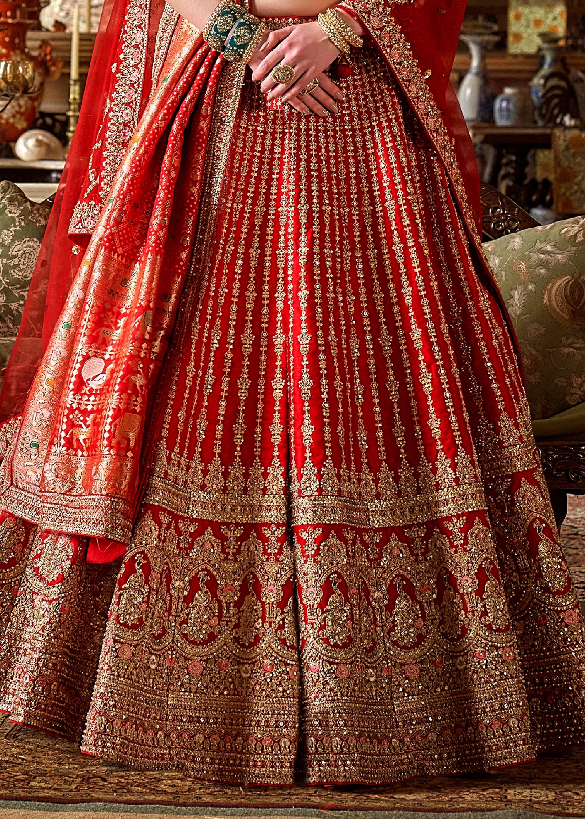 Red Heavy Embroidered Designer Lehenga